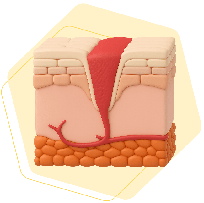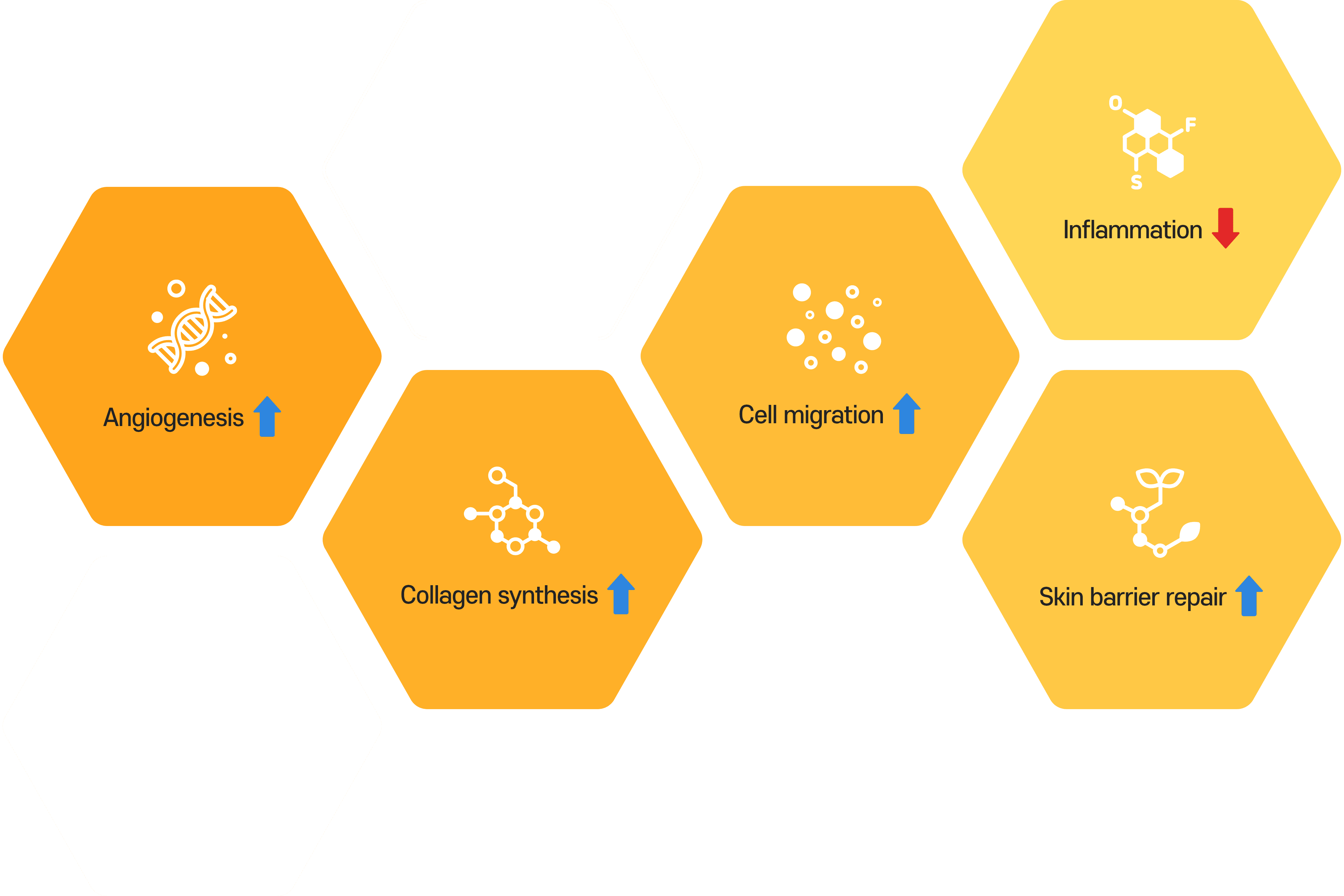 - 혈관 신생, 콜라겐 합성, 세포 이동 및 피부 장벽 복구를 지원